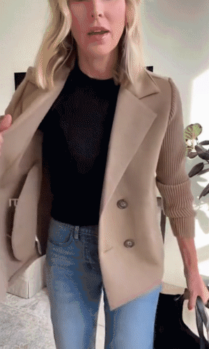 【🔥2025 New Products】🌈 Women's Lapel Button Patchwork Sleeve Casual Coat with Two Pockets on the Sides